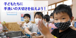 手洗いの大切さを理解してもらうために、ウイルスやばい菌の侵入経路を伝えるときは、「ウイルスやばい菌は、目・鼻・口から体の中に入ってくるよ。ついつい手で触ってしまうよね。だから、ハンドソープでしっかり手を洗うことが大切なんだよ」と説明し、子どもたちの“納得”を引き出します。