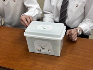 新しい専用BOX。環境に配慮し、花王のサニタリー製品の製造過程で生まれる端材を原料の一部に活用。